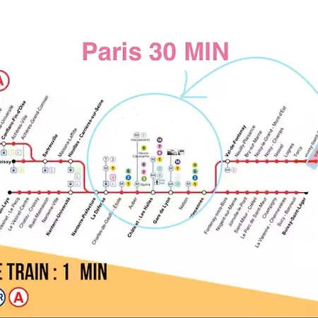 Daire Chessy şehrinin merkezine 30 dakikalık yürüme mesafesinde yer almaktadır. Yiyecek ve içeceklerin tadına bakmak için 350 metre uzaklıkta bulunan Goma Omakase, L'emphase restoranları mevcuttur. Vallée Village Alışveriş Merkezi de kısa bir sürüş mesafesindedir.